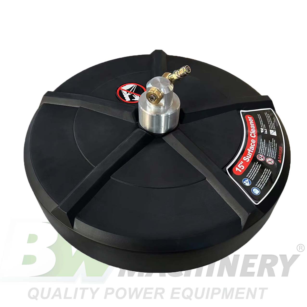 BWM quick connect rotating surface cleaner is used for cleaning driveways, sidewalks, patios, garage floors, and more. With its 15″ diameter, this accessory allows you to cut cleaning time and have the large cleaning jobs done fast. The BWM rotating surface cleaner is compatible with all BWM pressure washers and most common petrol pressure washers and is rated up to 4000PSI.