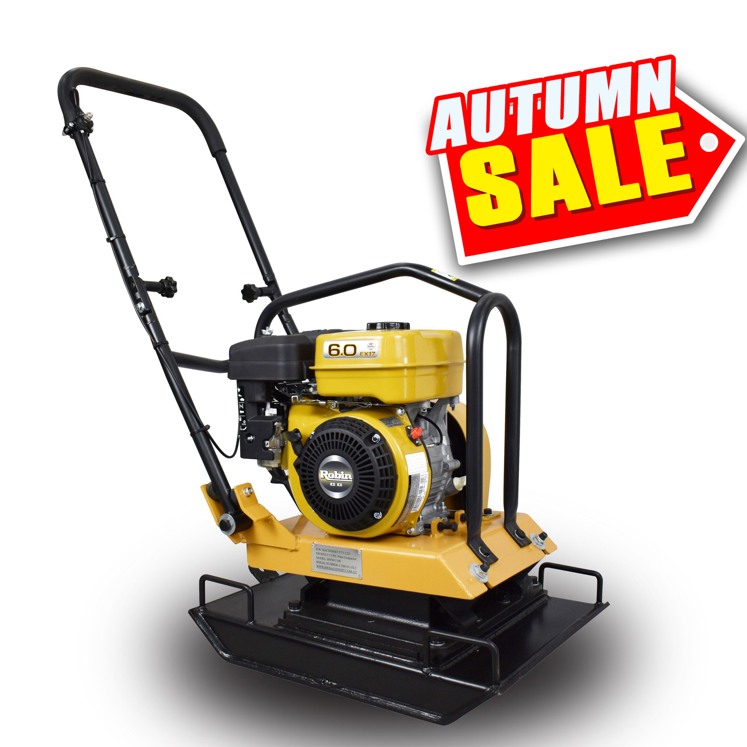 BWM C100 Plate Compactor – Robin EX17 6HP Engine 15KN With Wheels
