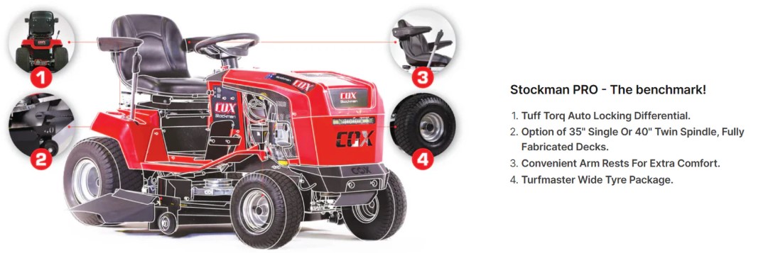 COX Stockman PRO CTL24C40 Ride On, 40" Fab Deck, Auto Diff Lock, Hydro drive, 24HP V-TWIN Engine