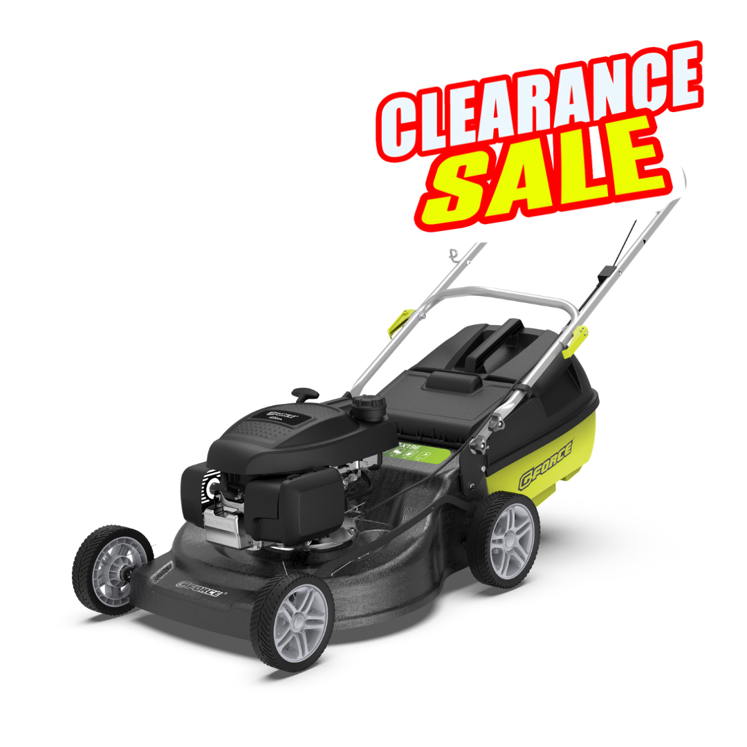 Honda GCV 201cc OHV Engine, 530mm (21″) Steel Chassis, 4 blade round disc with Mulching feature included, 200 x 250 mm (8″ x 9″) Dual ball bearing wheels, easy fold down handles with cross bar support & comfort grips, 60L Full plastic catcher. Engine brake Safety feature.