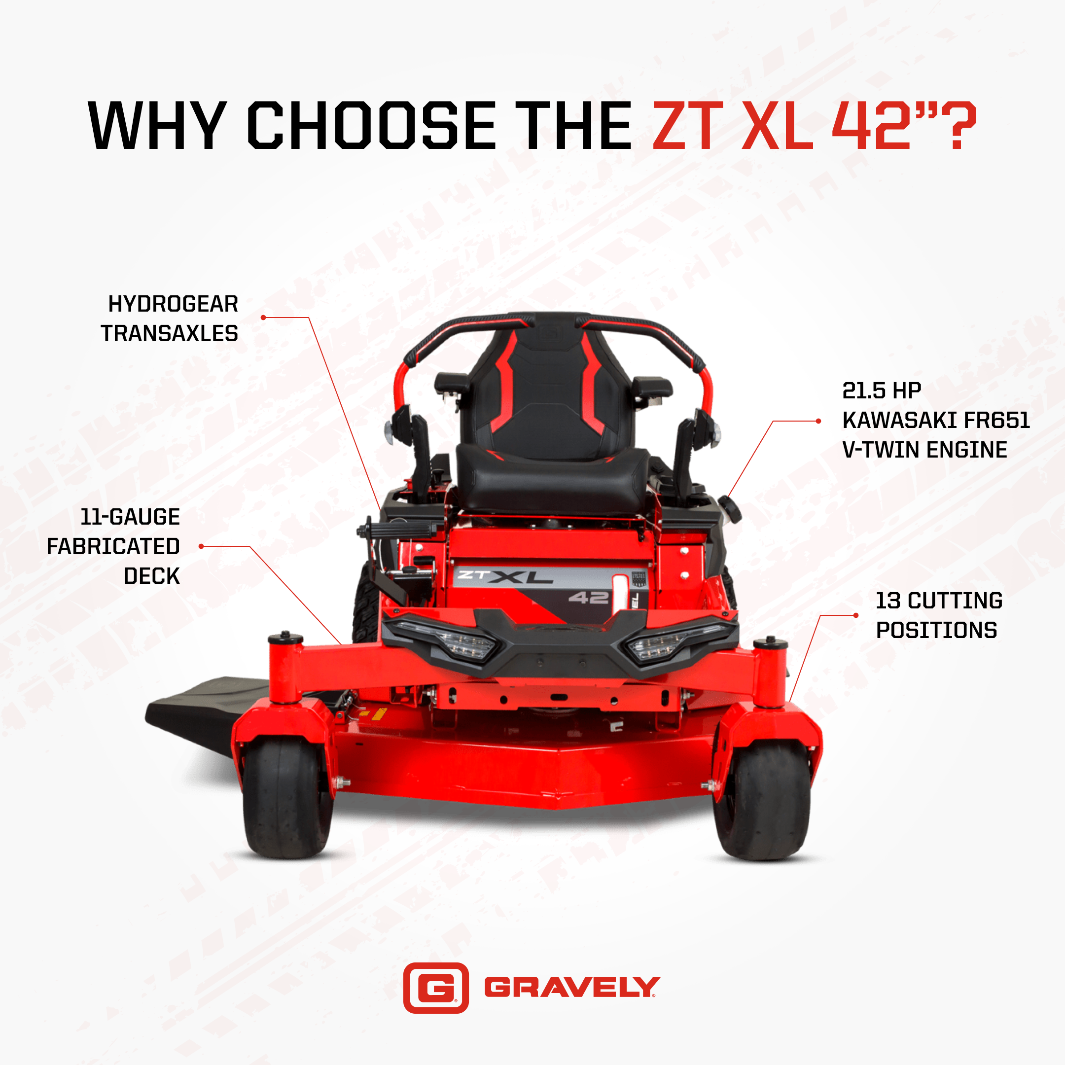 Gravely ZT XL 42, 21.5HP Kawasaki® FR651V Engine, 42"Fabricated Deck