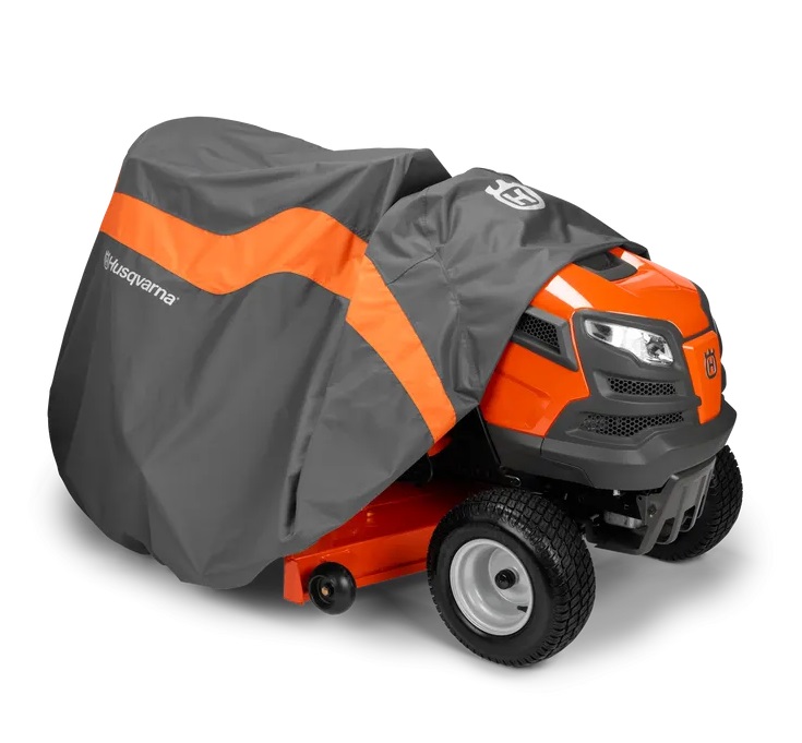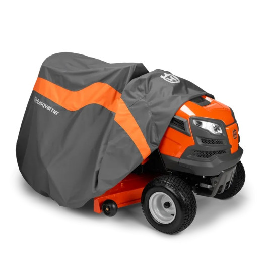Fits most Husqvarna tractors. All season protection for lawn and garden tractors. Reinforced vent allows air circulation and helps prevent ballooning in winds. Adjustable top and elastic cord in bottom hem for a quick and custom fit. Reinforced handle provides comfort when installing and removing cover. Heavy duty fabric. Handy storage bag. Fits tractors with decks up to 54″.
