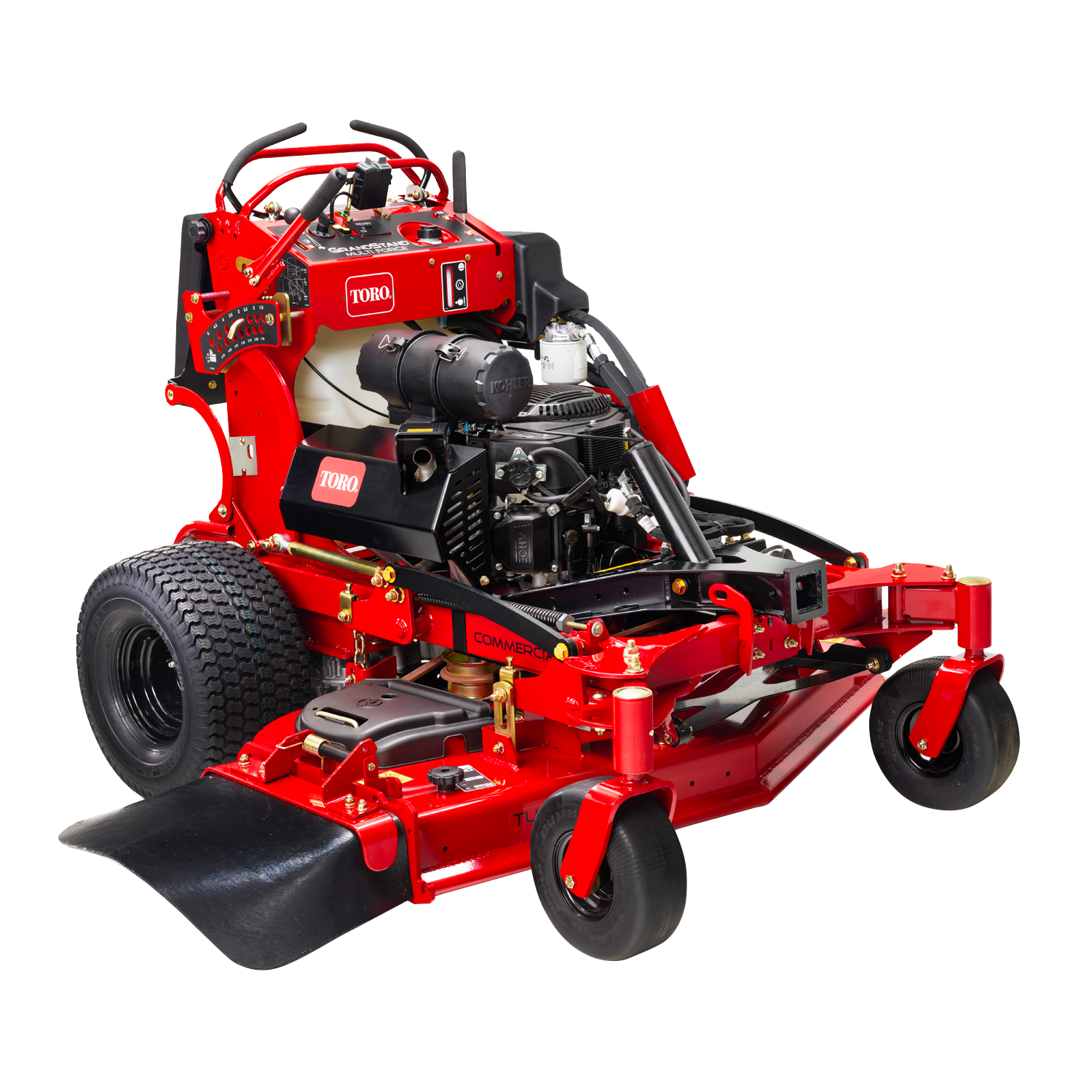 Now you can be more productive all-season long with the innovative Toro GrandStand® MULTI FORCE® stand-on mower that has the ability to attach a blower, aerator, dethatcher, and bagging system. It features a 52″ (132.1 cm) TURBO FORCE® cutting and 26.5 hp Kohler EFI 747cc engine. It’s designed to give you even more productivity. The smaller footprint takes up less space on the trailer when transporting. Mows 25% faster with speed up to 16.1 km/h, has a 39.75 litre fuel tank that allows you to go farther and work longer. We’ve eliminated the hydraulic hoses, reduced parts, no routine greasing and simplified the design to save you time. All GrandStand® stand-on mowers give you exceptional operator visibility which leads to less property damage and a higher quality of work. Best of all, great traction on slopes and manoeuvrability.